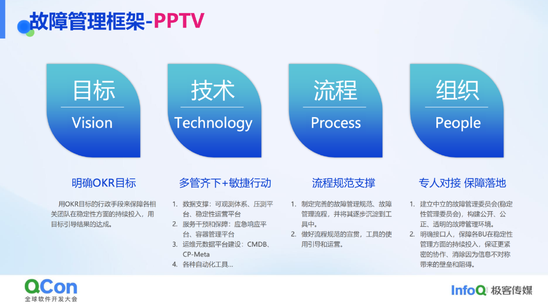 进一步扩展 PPTV(规划设计、技术流程、组织联动、目标对齐)的理念,适用于所有场景,确保工作不重不漏。PPTV 源于项目管理中的技术流程组织理念,强调目标对齐,以此展开各方面建设。内部采用 OKR 进行管理,技术方面可能涉及多个平台联动,组织方面则采用虚拟组织形式。