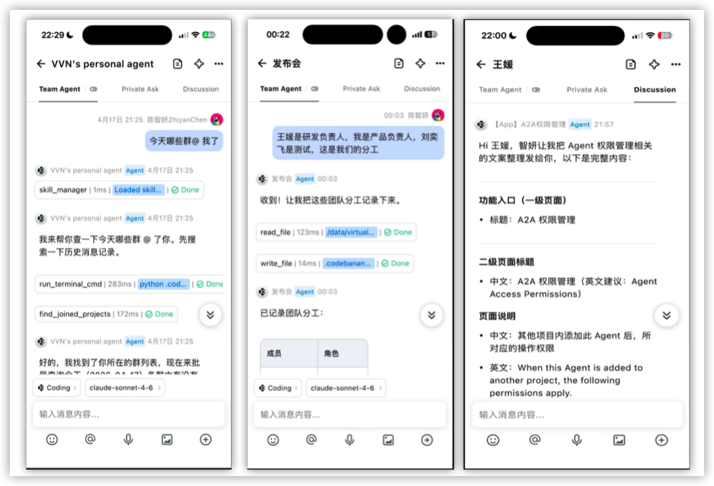 这也解释了为何发布会要反复强调权限、跨项目调用、Skill 复用和定时任务。老板临时改期,工程师可将开发 Agent 的编辑权限开放给老板;老板在筹备群里直接 @Agent,页面主视觉、票务信息、倒计时同步刷新;后续“日程变更通知全员”的流程,还能被沉淀为 Skill 供下次复用。
