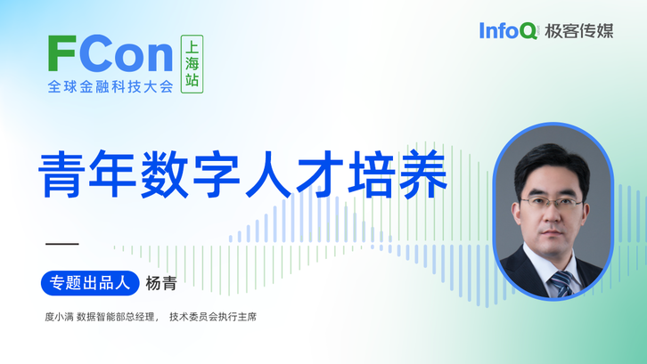 FCon 全球金融科技大会,将于 11 月在上海召开。度小满数据智能部总经理,技术委员会执行主席杨青将担任「青年数字人才培养」的专题出品人。在此次专题中,你将了解到一些优秀的青年才俊的成长经历,比如如何培养自己的数智化思维,如何使用新的做事方法或者创新技术解决业务难题等等。