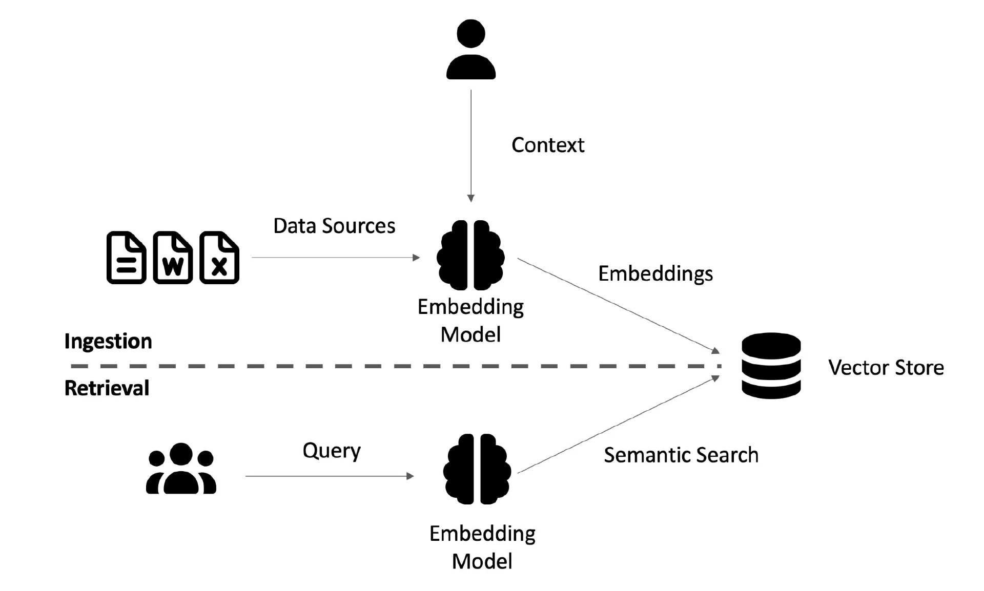 嵌入模型旨在将文本转换为能够表达和捕获概念之间语义关系的密集数值向量。这种设计允许基于上下文含义而非仅关键词进行搜索,从而提高结果的相关性和准确性。