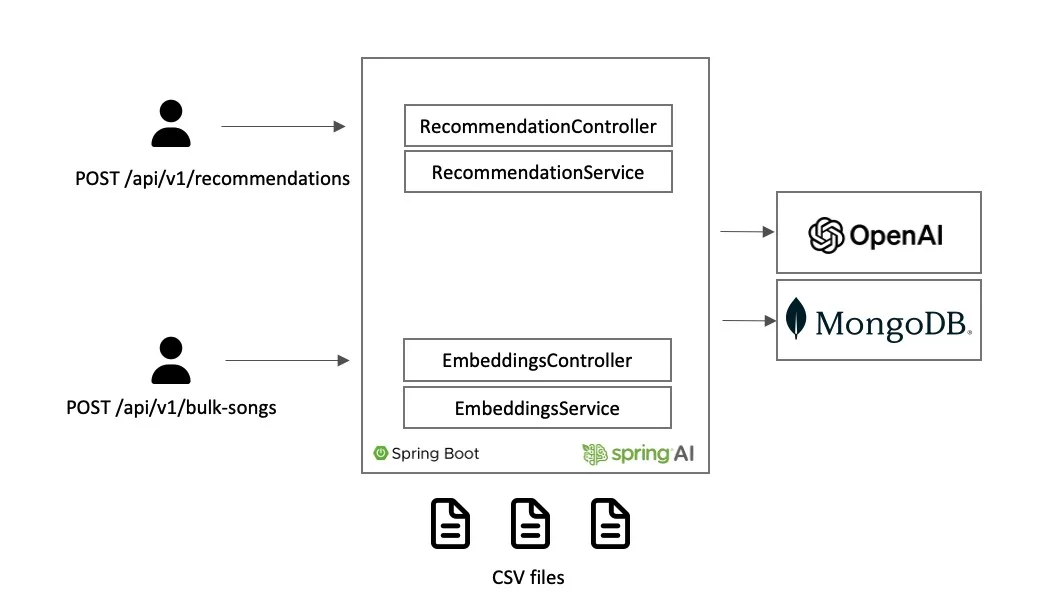 在本文中,我们将构建一个基于情感的音乐推荐系统原型,利用许多企业公司中常见的技术栈。这个想法是使用一个用例来展示我们如何能够构建一个非常强大和可扩展的系统,利用现有的技能和知识。像 Spring Boot、MongoDB 和 OpenAI 这样的广泛可用技术可以用于这个目的。