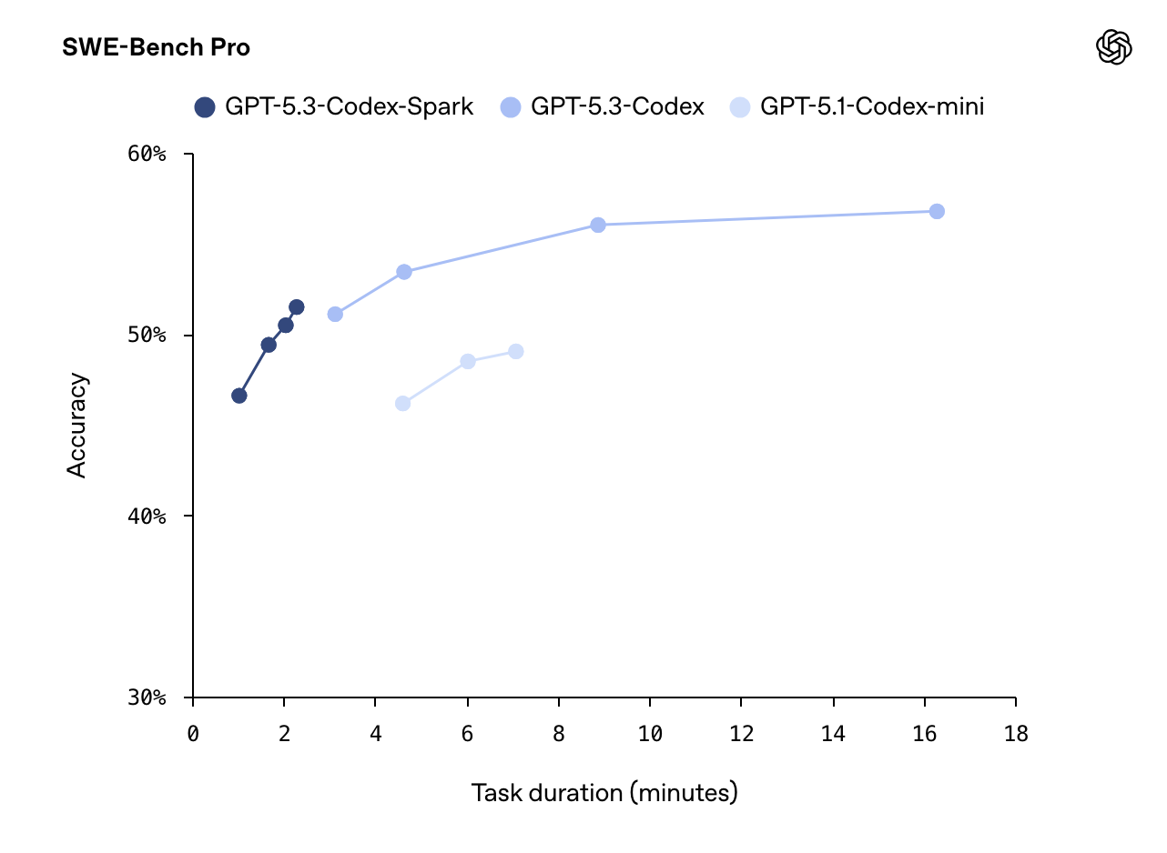 这印证了 Codex-Spark 的核心定位:不是通过更复杂的推理链取胜,而是通过更快的反馈循环提升整体效率。