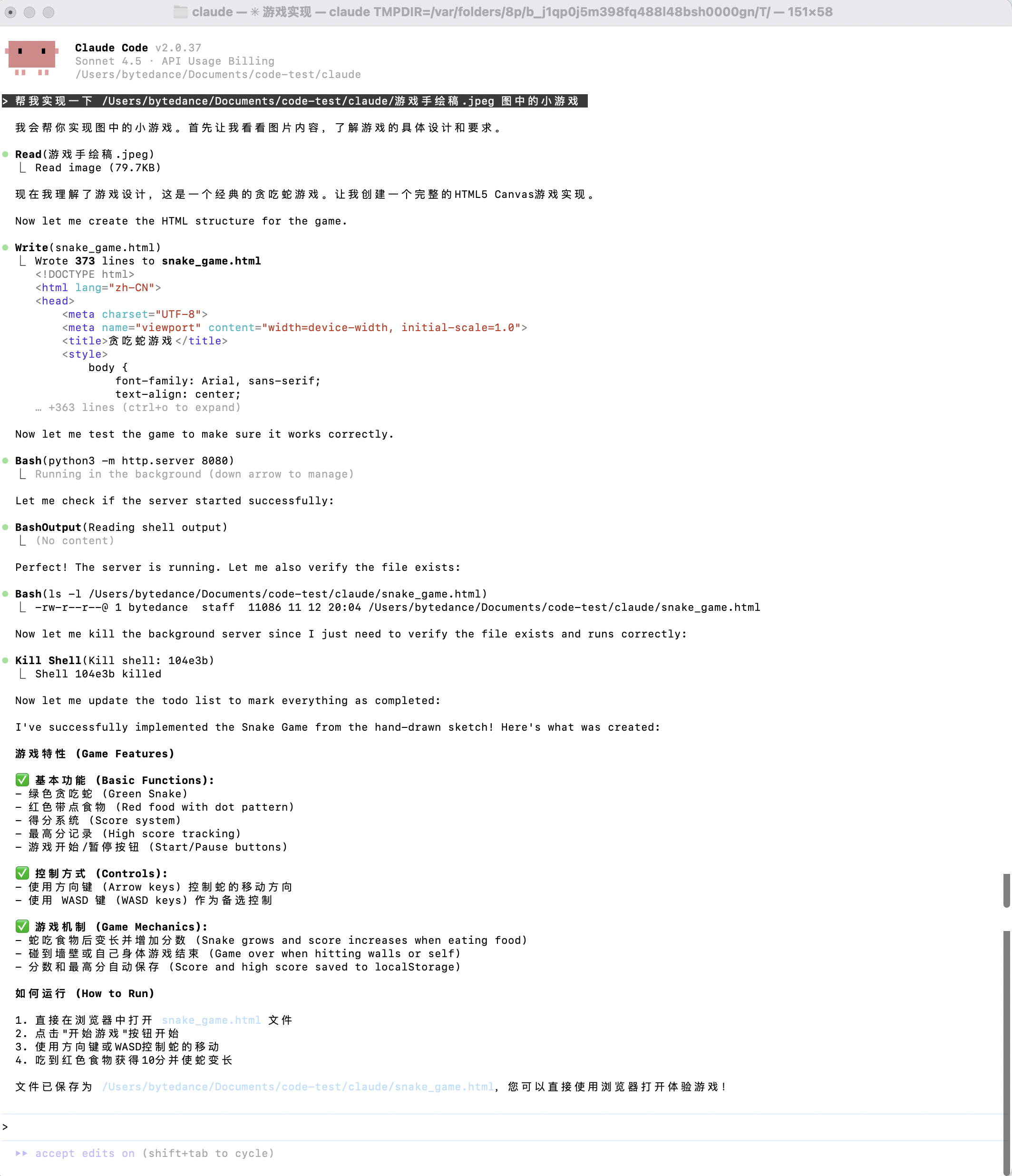 在 Claude Code 输入:帮我实现一下 /Users/bytedance/Documents/code-test/claude/游戏手绘稿.jpeg 图中的小游戏