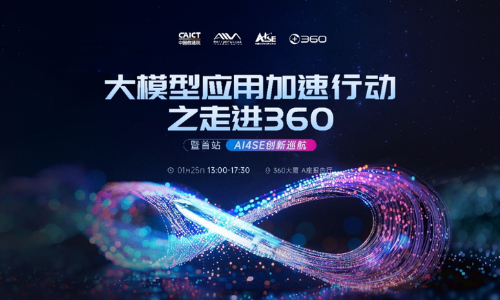 智能化软件工程领域发展迅速,其智能化赋予软件研发流程更高的自动化和智能化水平。为加强 AI 与软件工程领域的交流互通,推动行业多融合发展,2024 年 1 月 25 日,由中国信通院人工智能研究中心、中国人工智能产业发展联盟(以下简称 AIIA)和 360 集团联合主办的“大模型应用加速行动之走进 360 暨首站‘AI4SE 创新巡航’”活动在京成功举办。