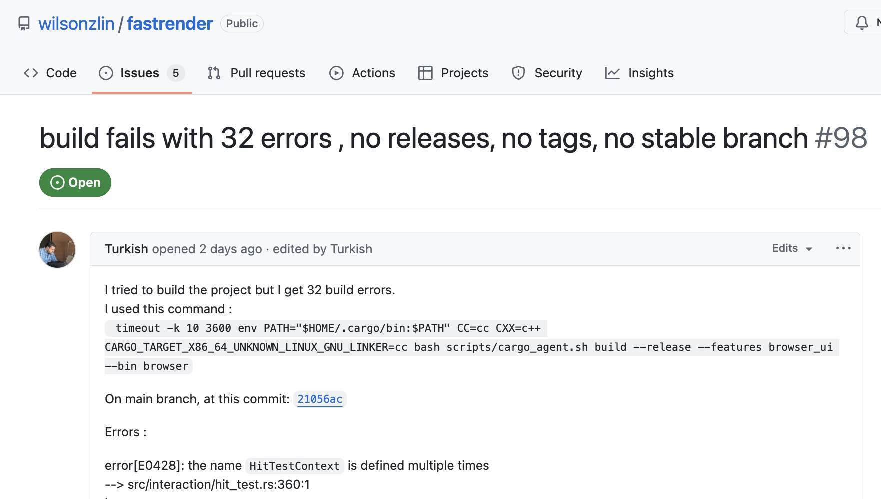 从仓库公开信息来看,近期 main 分支的多次 GitHub Actions 运行结果显示失败(其中还包括工作流文件本身的错误);不少开发者的独立构建尝试也报告了数十个编译错误。与此同时,最近的一些 PR 虽然被合并,但 CI 仍处于失败状态。