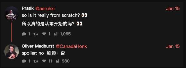 还有一个更敏感的追问也随之出现:“所以这真的是从零开始写的吗?”他给出的回应更像一句反转预告:“剧透:不是。”