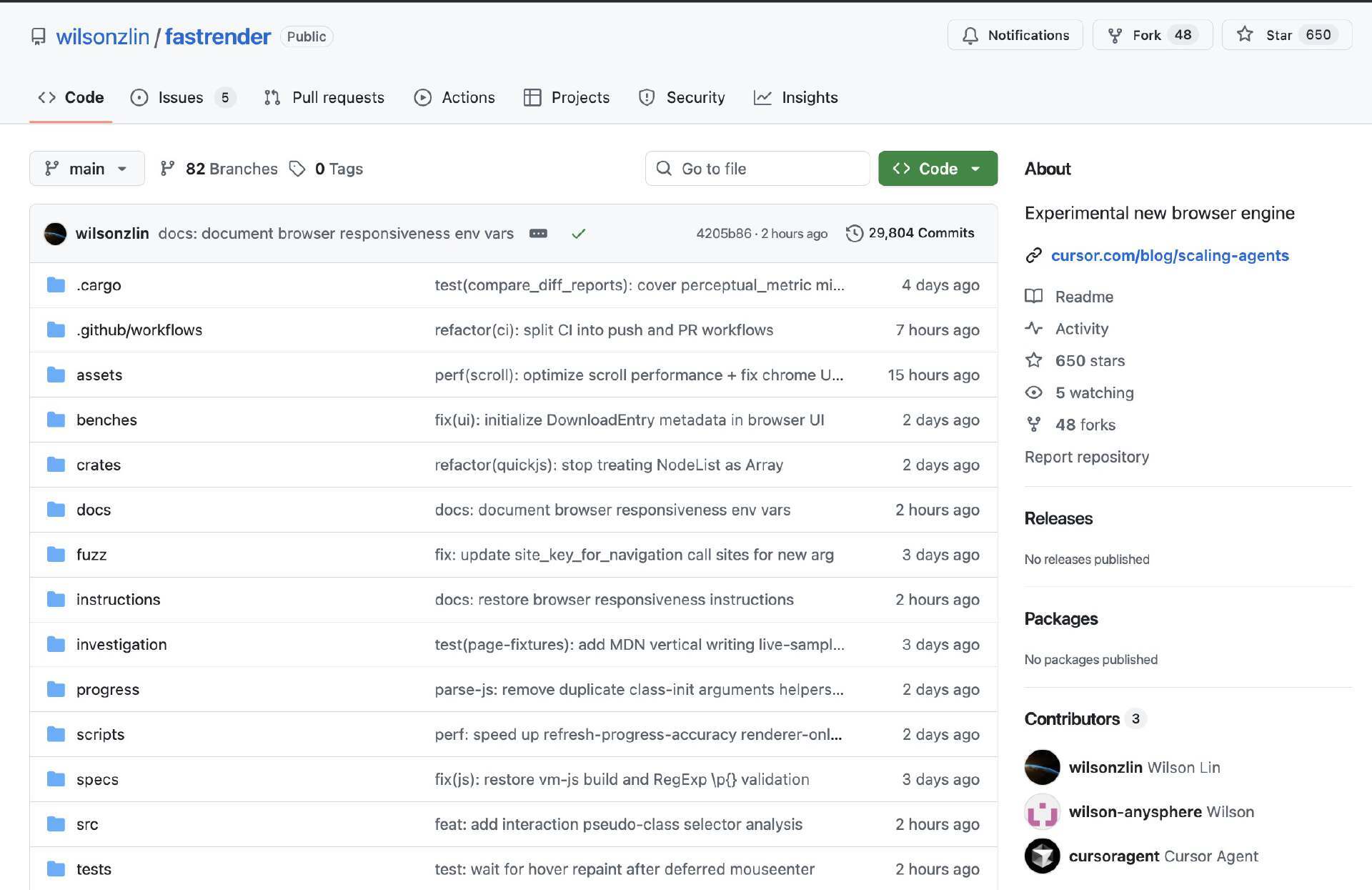 而 Cursor 的博客文章除了提供代码仓库链接外,既没有提供可复现的演示,也没有提供任何已知的有效版本(标签/发布/提交)来验证截图。无论如何,这文章本身给人一种原型功能完备的错觉,却忽略了此类声明应有的基本可复现性特征。