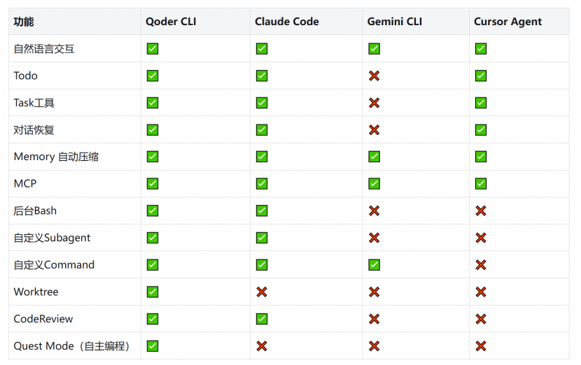 Qoder CLI 可为开发者提供丰富的功能,使用 Quest 模式(自主编程),无需开发者深度介入,就可以轻松实现 Spec 驱动的任务委派,让 AI 自主完成任务开发。使用 CodeReview 能力,开发者在命令行终端即可进行代码审查,快速扫描项目中的关键改动点,并给出审查意见,代码审查耗时减少 50%,代码质量提升一倍。此外,Qoder CLI 内置多种工具,支持文件编辑、命令运行与提交创建,并能通过 MCP 灵活扩展或自定义扩展。