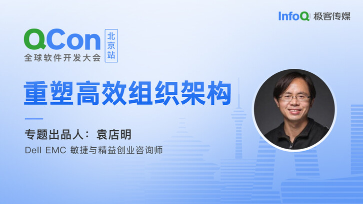 9 月 3 日 - 5 日,在 QCon 全球软件开发大会(北京站),Dell EMC 敏捷与精益创业咨询师袁店明将担任「重塑高效组织架构」的专题出品人。在此次专题中,你将了解到面对市场的变化,大型组织和企业调整自己的组织架构来应对外界的各种变化的真实故事,以及组织架构变更后,企业应该经受住的一些拷问。