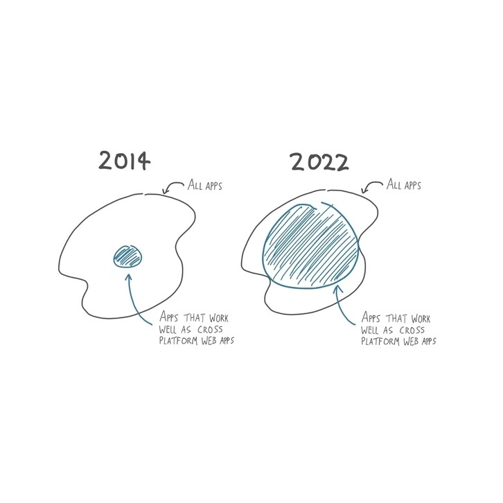 浏览器和 Web 技术每年都在变得越来越强大,每年都有更多类型的应用可以跨平台开发。