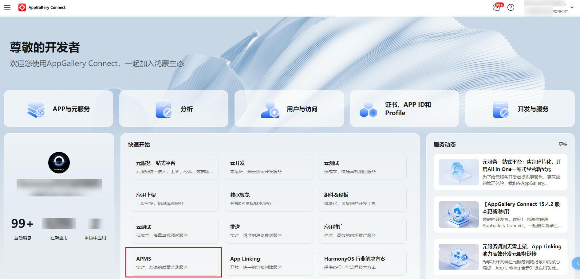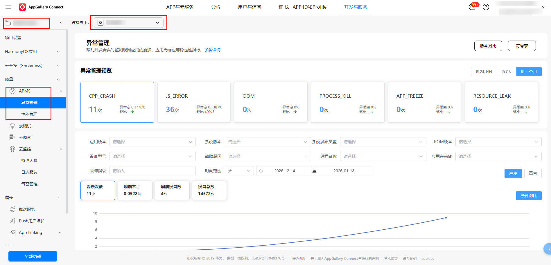 APMS 无需复杂配置,开发者登录 AGC 即可快速上手: