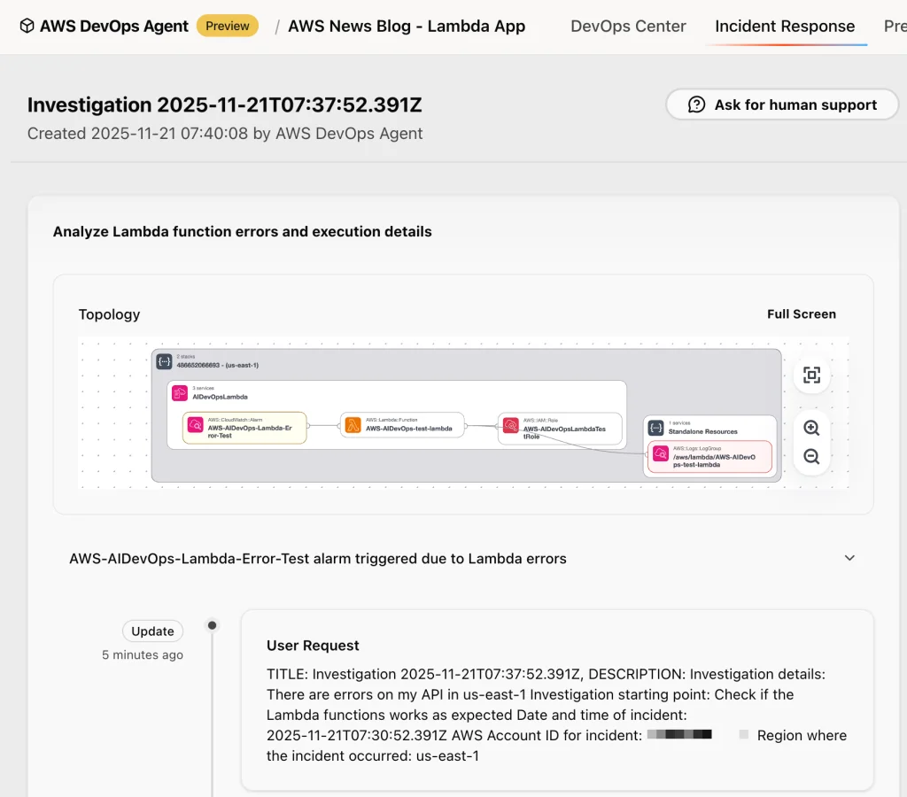 在预览中,AWS DevOps Agent以事件响应为目标,通过分析 CloudWatch、GitHub、ServiceNow 和其他工具的数据来识别根本原因并协调事件响应,从而提高系统可靠性。