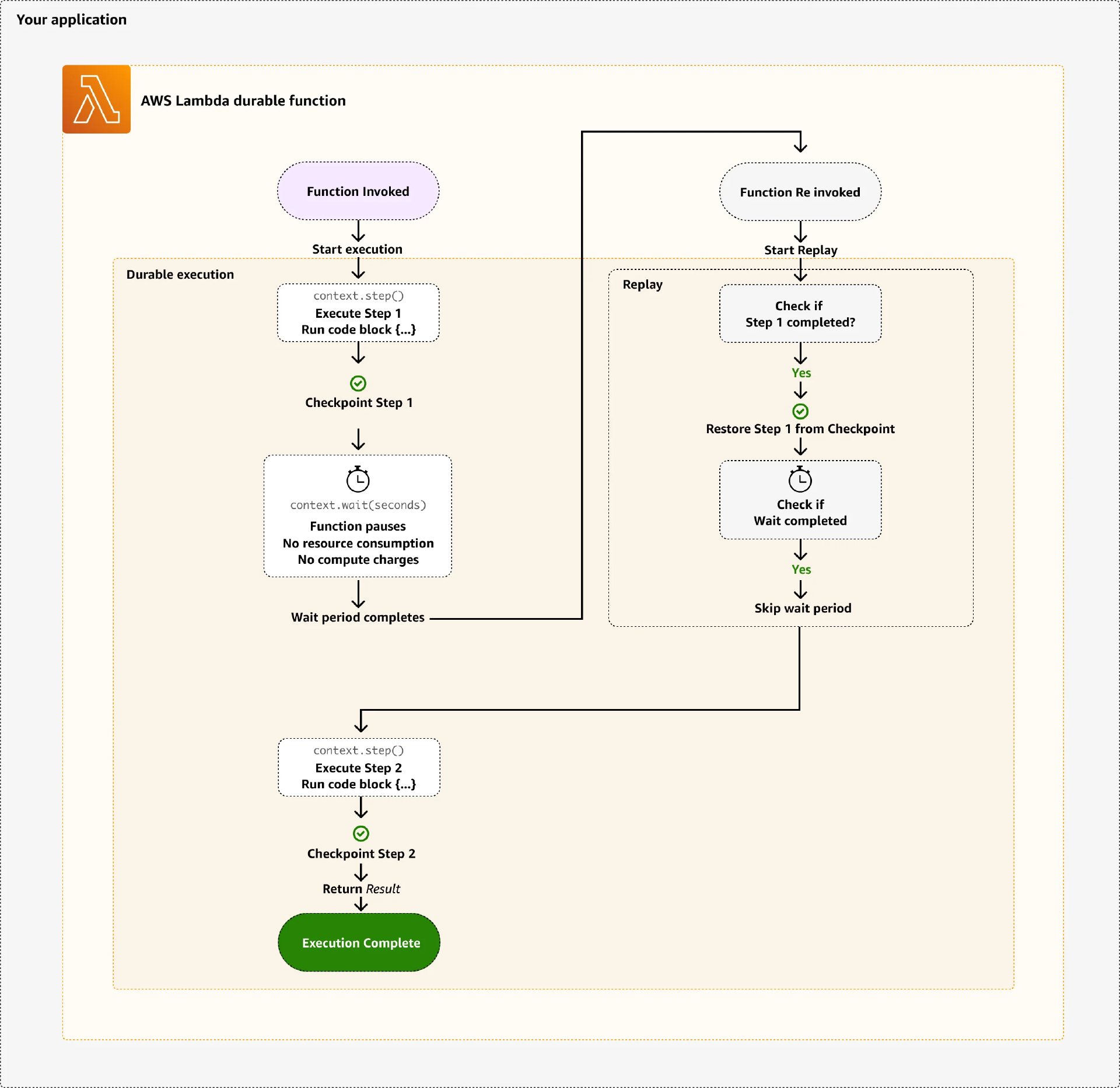 对于无服务器部署,AWS 增加了Lambda Managed Instances和 Lambda 持久函数(Durable Functions),为开发者提供了在 EC2 硬件上运行 Lambda 函数以及构建可以长时间暂停和恢复的多步骤工作流的方法。无服务器专家和 AWS 无服务器英雄Yan Cui评论道:
