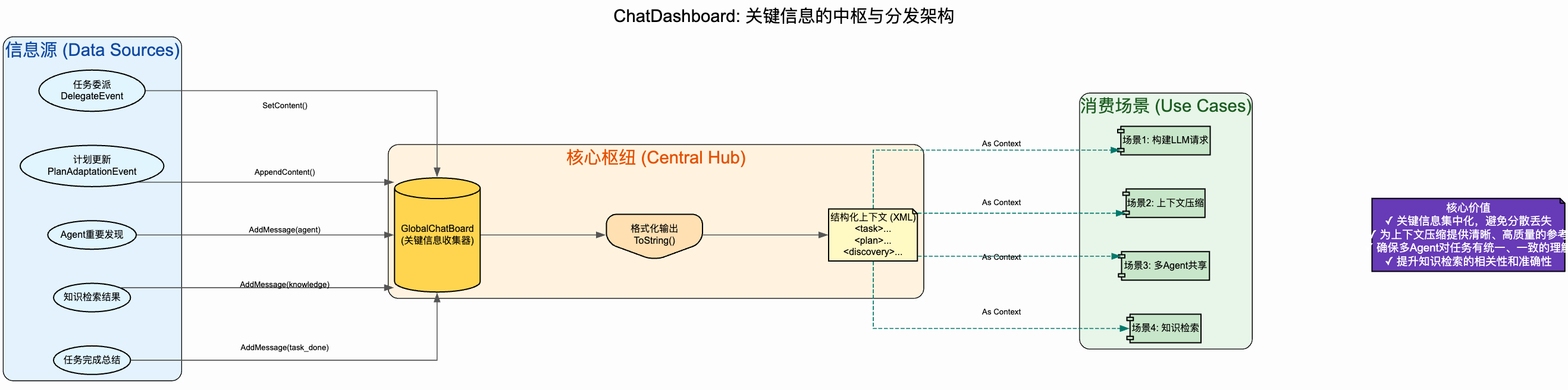 任务目标一致性:通过上下文锚定 (ChatDashDoard),即使经过多次压缩和多个 Agent 协作,仍能保持对用户原始需求的准确理解