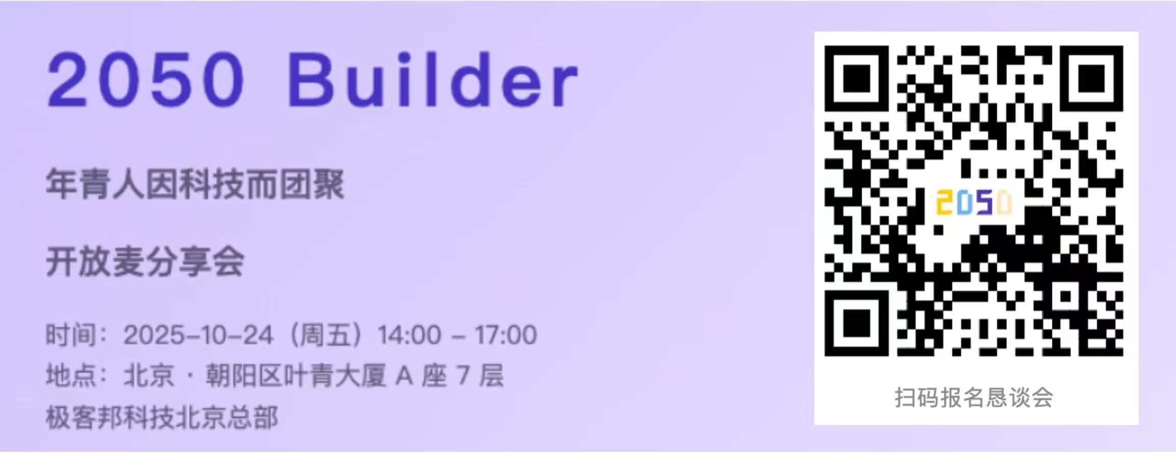 以“年青人因科技而团聚”为愿景的全球科技社区活动——2050 恳谈会,于 10 月迎来杭州主会场和北京分会场特别活动。