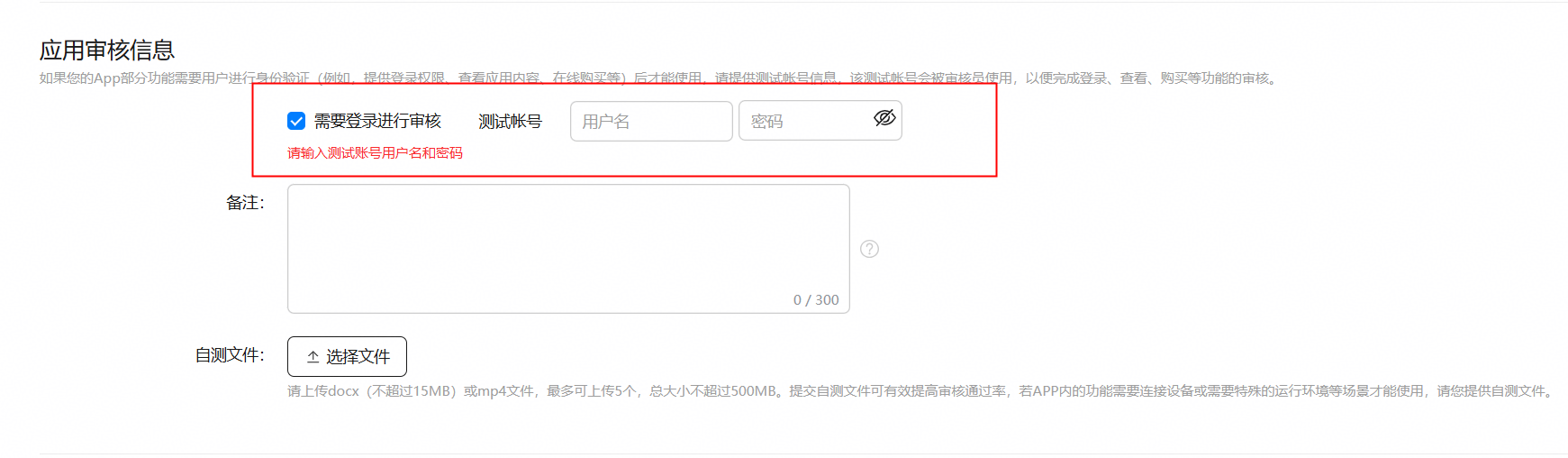 1、提供测试账号:应用需要注册登录才能使用时,需要在提交审核信息填写页面 > 版本信息 > 应用审核信息 处,正确填写可直接登录的测试账号用户名和密码。如果应用功能内容涉及 VIP 权限,还需提供 VIP 测试账号及密码;