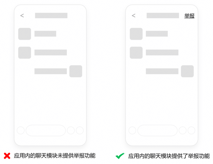 如果应用内涉及聊天、直播、互动等社交通讯模块,含求职招聘功能,含深度合成或提供生成式人工智能服务,或者是面向未成年人的教育类应用等,需要在应用内显著位置或对应服务功能模块提供举报功能。