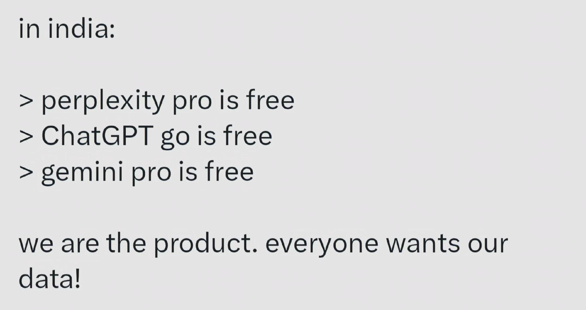过去几个月,大型人工智能公司在印度动作频频。首先是 Perplexity AI 公司与印度第二大移动网络运营商 Airtel 合作,在印度免费提供其高级 Pro 版本。他们免费赠送了一份价值约 17000 卢比(约合人民币 1365 元)的年度订阅服务。这发生在 7 月份。此举拉开了更多类似合作的序幕。