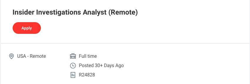 CrowdStrike 公司还重新发布了“内部调查分析师”的招聘职位。