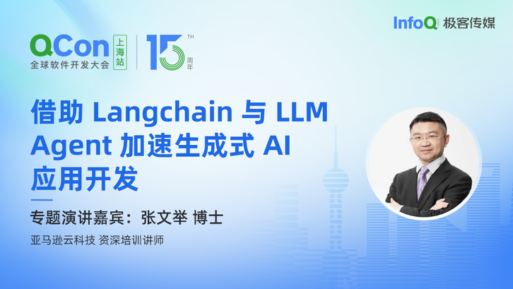 QCon 全球软件开发大会,将于 12 月在上海召开。亚马逊云科技资深培训讲师张文举博士确将发表题为《借助 Langchain 与 LLM Agent 加速生成式 AI 应用开发》主题分享,探讨 LLM-based Agent 特性,业界发展情况以及如何利用 Agent 构建生成式 AI 应用。