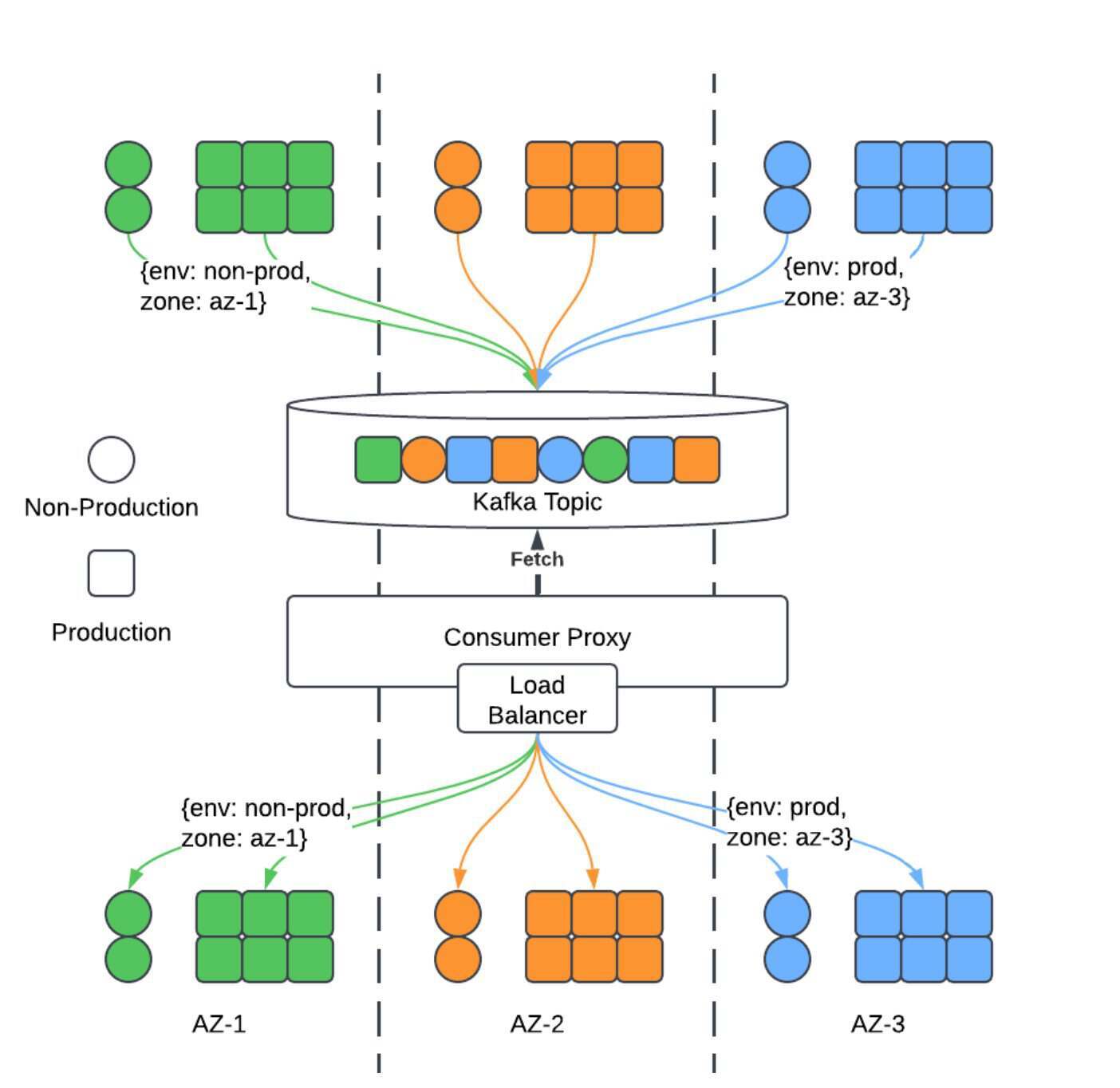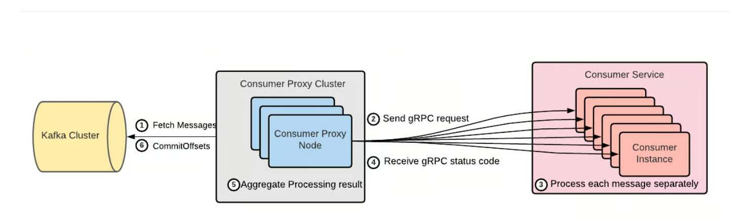 此前的内部消费者代理主要面临四大挑战,也就是,当消息因载荷大小限制或服务实例无效而投递失败时,顺序分区处理可能阻塞,从而产生队头阻塞;运行数千台代理服务器支撑消费者服务被证明效率低下,硬件资源消耗不均;消费者服务通常实现自定义的延迟语义,增加了服务复杂度;生产与非生产环境或不同区域之间的工作负载隔离,要么需要大量 Topic,要么需要复杂的负载均衡配置。
