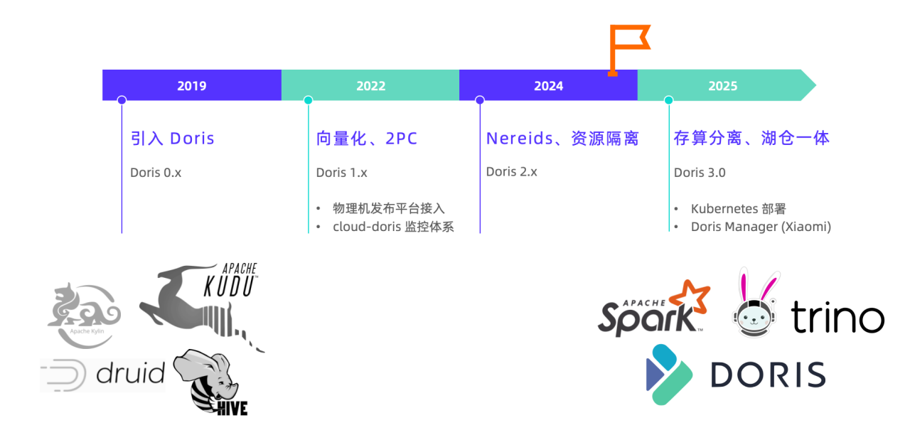 早期小米技术栈复杂多样,数据湖体系与 OLAP 引擎众多。自 2019 年在小米内部投入应用以来,Apache Doris 逐渐从中脱颖而出,发展成为小米数据架构的核心引擎。