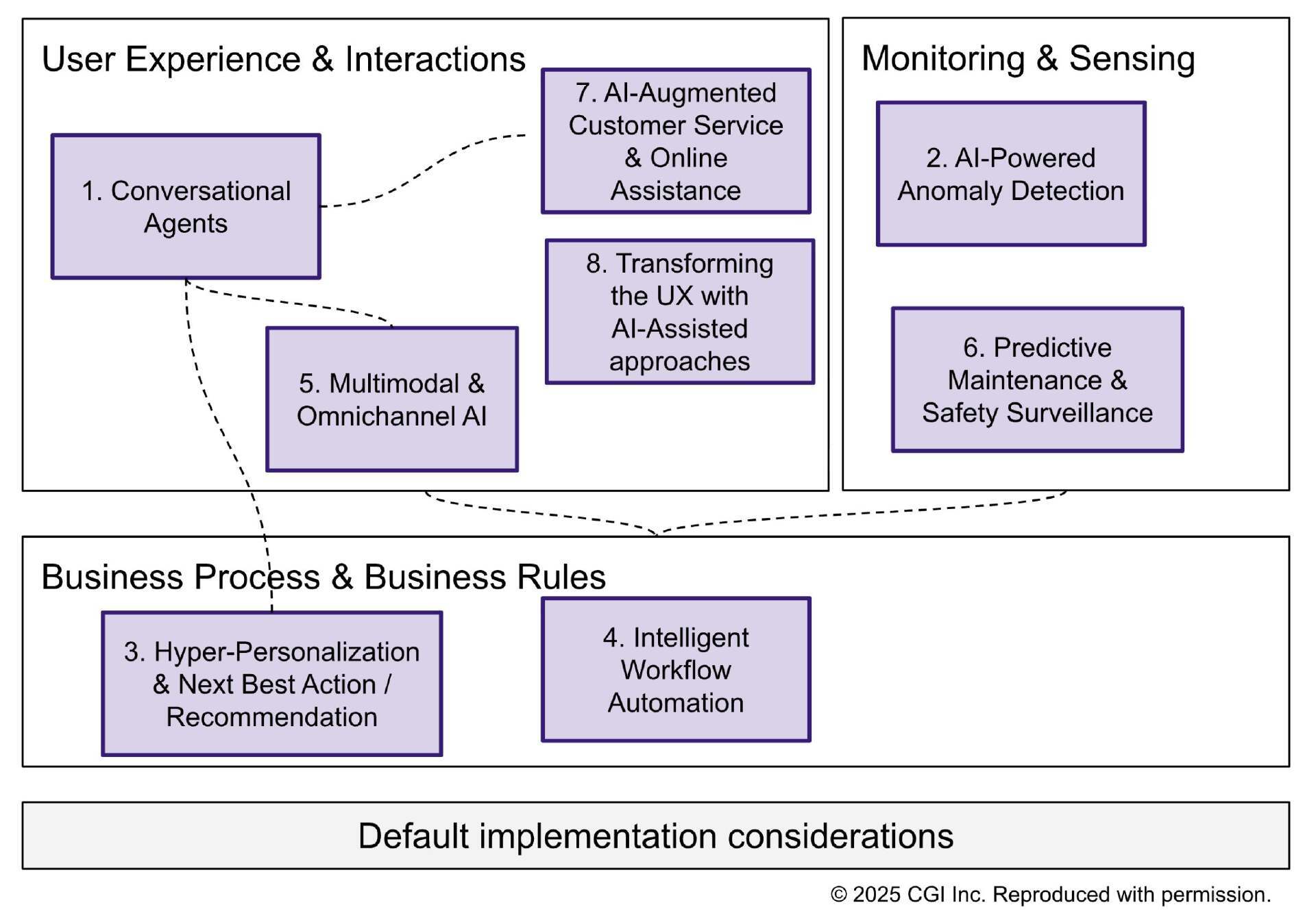 以下案例研究展示了“架构流动性”在实践中的具体体现。在 CGI 的一项倡议中,目标是将 AI 用例转化为跨多个业务解决方案的规模化 AI 实现。