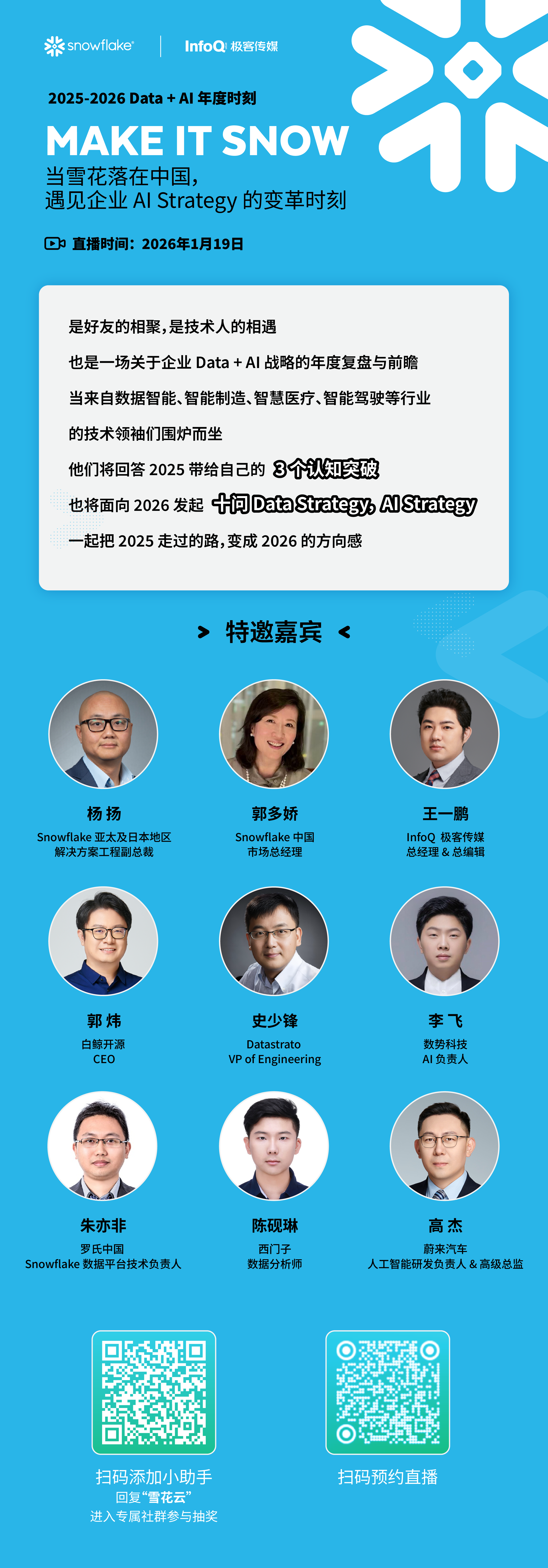 在这样的背景下,InfoQ 联合 Snowflake 发起了 「MAKE IT SNOW|2025–2026 Data + AI 年度时刻」 直播活动。