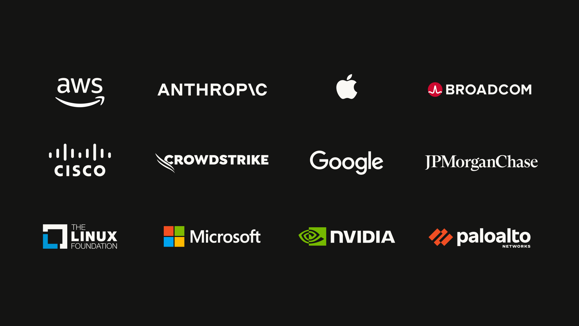 目前,Anthropic 正将它用于一个防御性网络安全项目,仅向少数合作伙伴提供,包括亚马逊云科技、苹果、博通、思科、CrowdStrike、谷歌、摩根大通、Linux 基金会、微软、英伟达以及 Palo Alto Networks,并且他们一起发起了 Glasswing 计划。