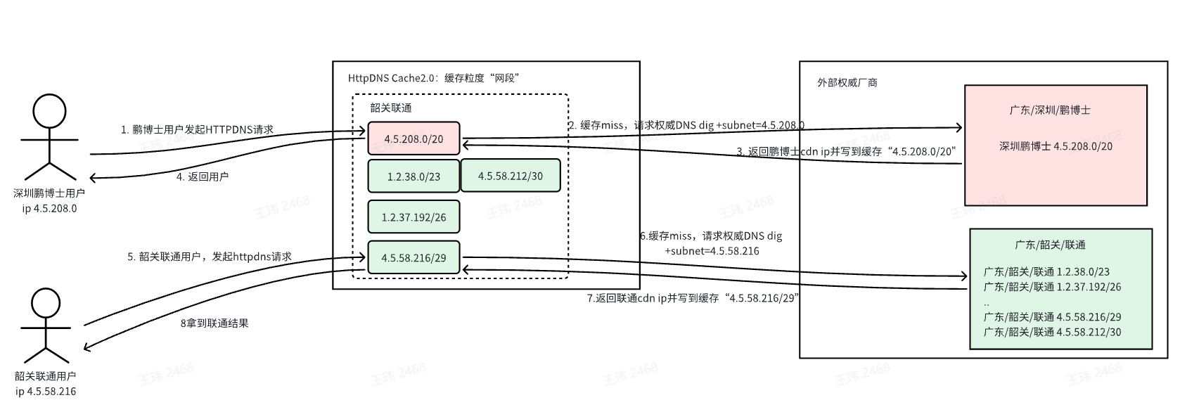 在 HTTPDNS 场景中,不同域名对解析精度的需求不同。高优先级域名(如 API 调用、直播 / 点播流媒体分发)对解析精准性要求高,缓存不够精细可能导致跨网访问延迟增加;而低精度需求域名(如 302 域名)采用过细缓存会浪费存储资源,频繁回源请求也会增加权威 DNS 压力。