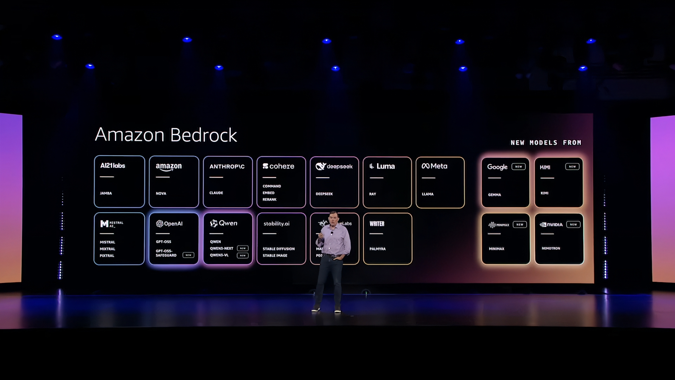 本次,Amazon Bedrock 带来了 4 款自研模型更新,以及多款第三方模型,Kimi 和 MiniMax 作为首次入驻 Amazon Bedrock 的模型,也在 2025 亚马逊云科技 re:Invent 的舞台上获得了全世界的关注。模型层面上的丰富度,也是亚马逊云科技 Choice Matters 理念的延续——选择大于一切,优秀的模型将长期并存。