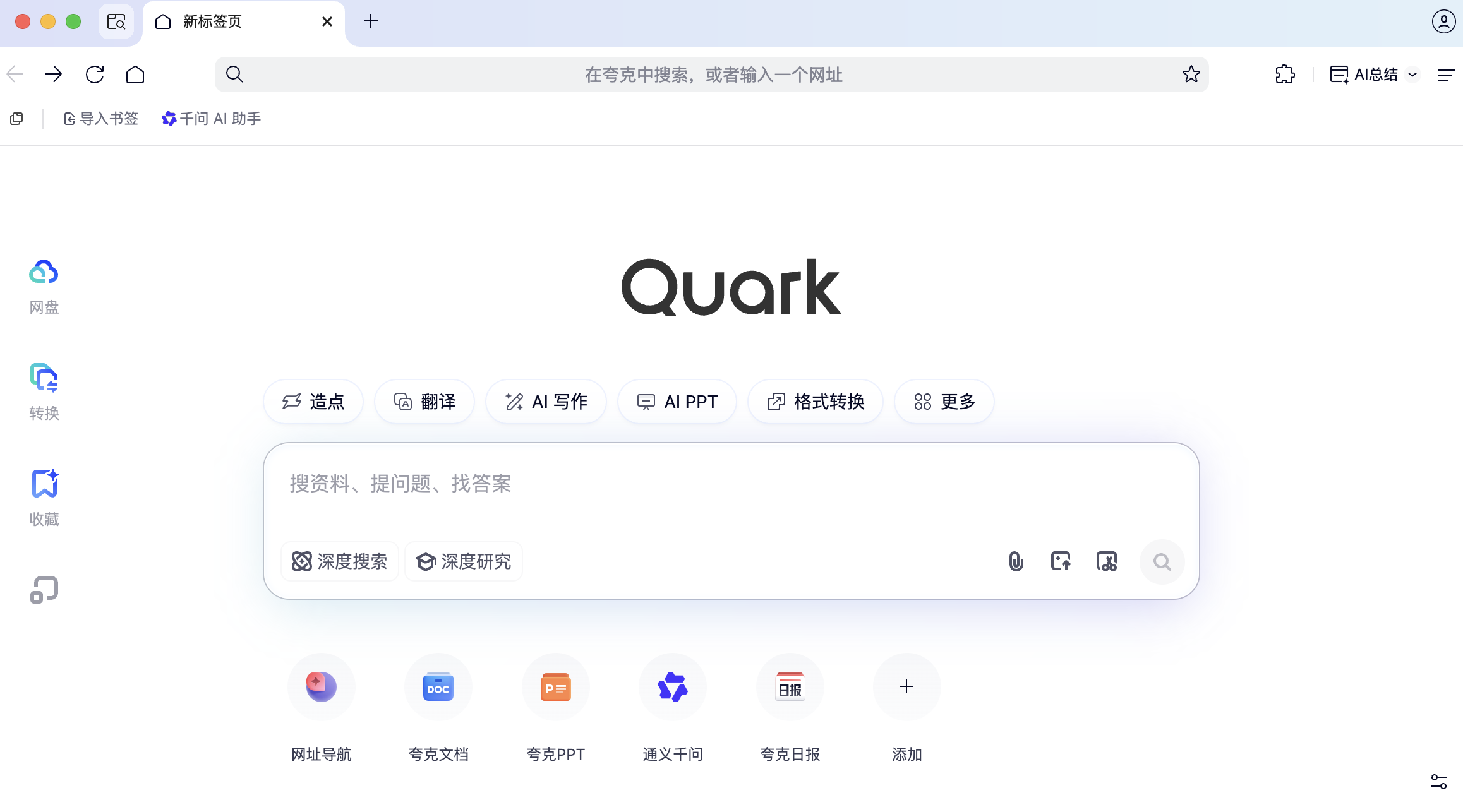 千问深度内嵌于夸克惯有的简约界面,用户在首页搜索框和侧边栏可直接调用千问,无需切换标签页便可完成“边浏览边对话、边看边总结、即问即答”的流畅交互。