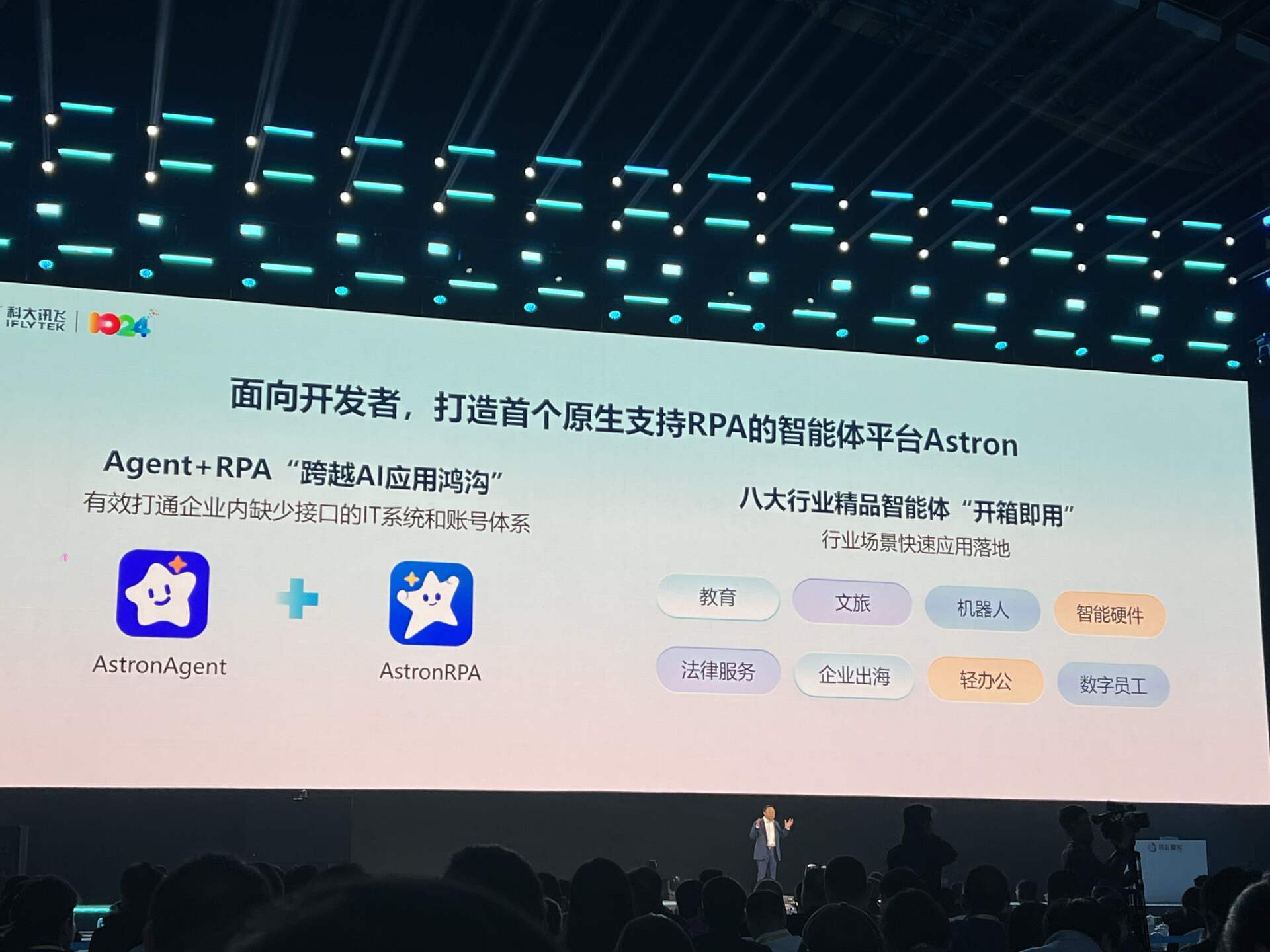此外,科大讯飞还面向开发者正式发布并开源了其首个原生支持 RPA 的智能体平台 Astron。该平台将 Agent(大脑)与 RPA(手脚)结合,跨越 AI 应用鸿沟,并提供“开箱即用”的八大行业智能体,为中国开发者打造自主可控的全球创新引擎。