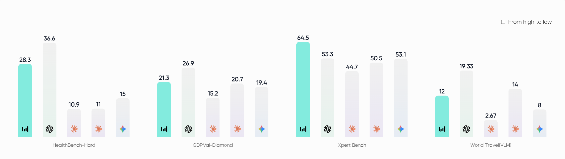 豆包 2.0 Pro 在 SuperGPQA 上分数超过 GPT 5.2,并在 HealthBench 上拿到第一名,在科学领域的整体成绩与 Gemini 3 Pro 和 GPT 5.2 相当。