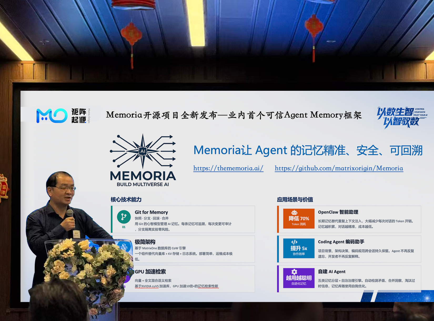 随着 OpenClaw、Cursor 这样的 AI Agent 大规模走进应用日常,Memory 的管理正成为制约 Agent 走进现实生产力的最后一道枷锁。今天,在 NVIDIA GTC 这一全球 AI 技术大会的舞台上,矩阵起源 CEO 王龙正式宣布开源其核心 Agent Memory 项目:Memoria(https://github.com/matrixorigin/Memoria)。