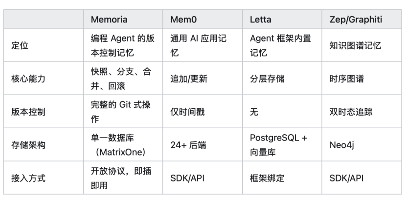 市面上已经有一些 Agent 记忆方案——Mem0、Letta、Zep 等。它们各有所长,但都面临一个共同的局限:记忆一旦写入,就很难安全地管理。