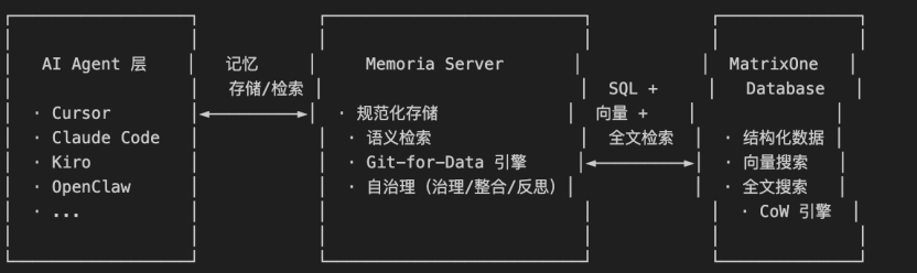 作为业内首个提出"Git for Memory"概念的 Agent 可信记忆框架,Memoria 不仅仅是让 Agent 记住,更是通过底层 MatrixOne 的 Copy-on-Write 技术,让 AI 记忆变得可回溯、可管理、可信赖。