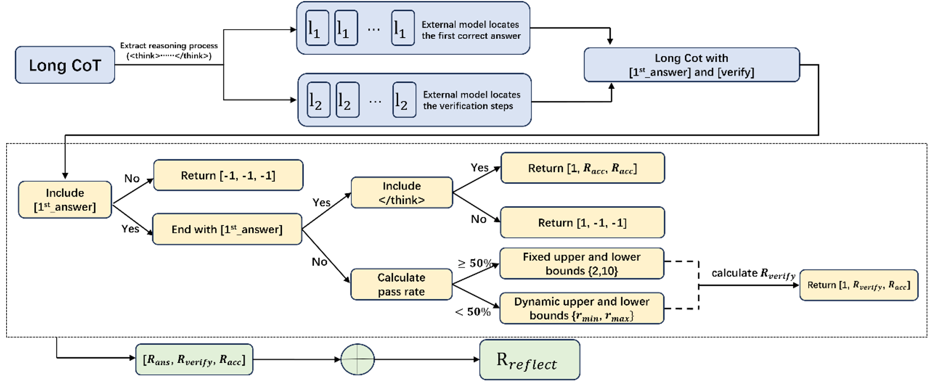 针对推理模型普遍存在的“过度思考(Overthinking)”问题,Yuan3.0 Flash 创新 Reflection-aware Adaptive Policy Optimization(RAPO) 强化学习算法,提出反思抑制奖励机制(RIRM),从训练层面引导模型减少无效反思,专注于必要推理步骤(如图 4)。