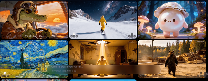 HappyOyster 基于原生多模态架构而建,支持多模态理解与音视频联合生成。目前产品可实现“漫游(Wander)”和“导演(Direct)”两大核心能力,用户可以实时构建可互动、可演绎、可探索的 AI 数字世界。同时,用户生成的数字世界,不仅能被完整保存,还能开放给其他用户进行二次创作。