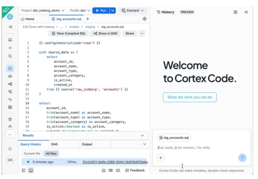 • 确保底层数据经过建模和清洗,达到可接受的质量标准。若在此环节存在问题,Cortex Code 可充当高效的加速器,用于重构数据管道、暴露问题并统一数据模式;