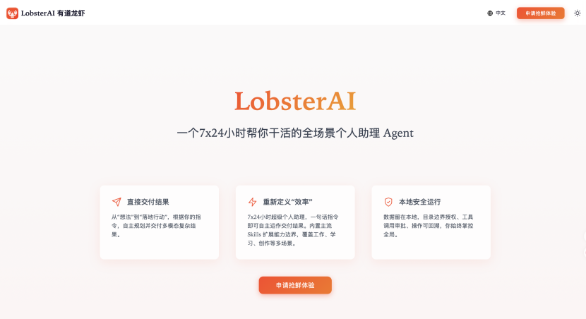 随着 AI 从“能聊天”迈向“能办事”的 Agent 阶段,个人 AI Agent 已成为科技圈公认的下一波浪潮。2 月 11 日,网易有道正式推出桌面级 Agent“LobsterAI”(中文名:有道龙虾)。这是一个定位为“7×24 小时帮你干活的全场景个人助理 Agent”,目前已在官网开放内测申请。