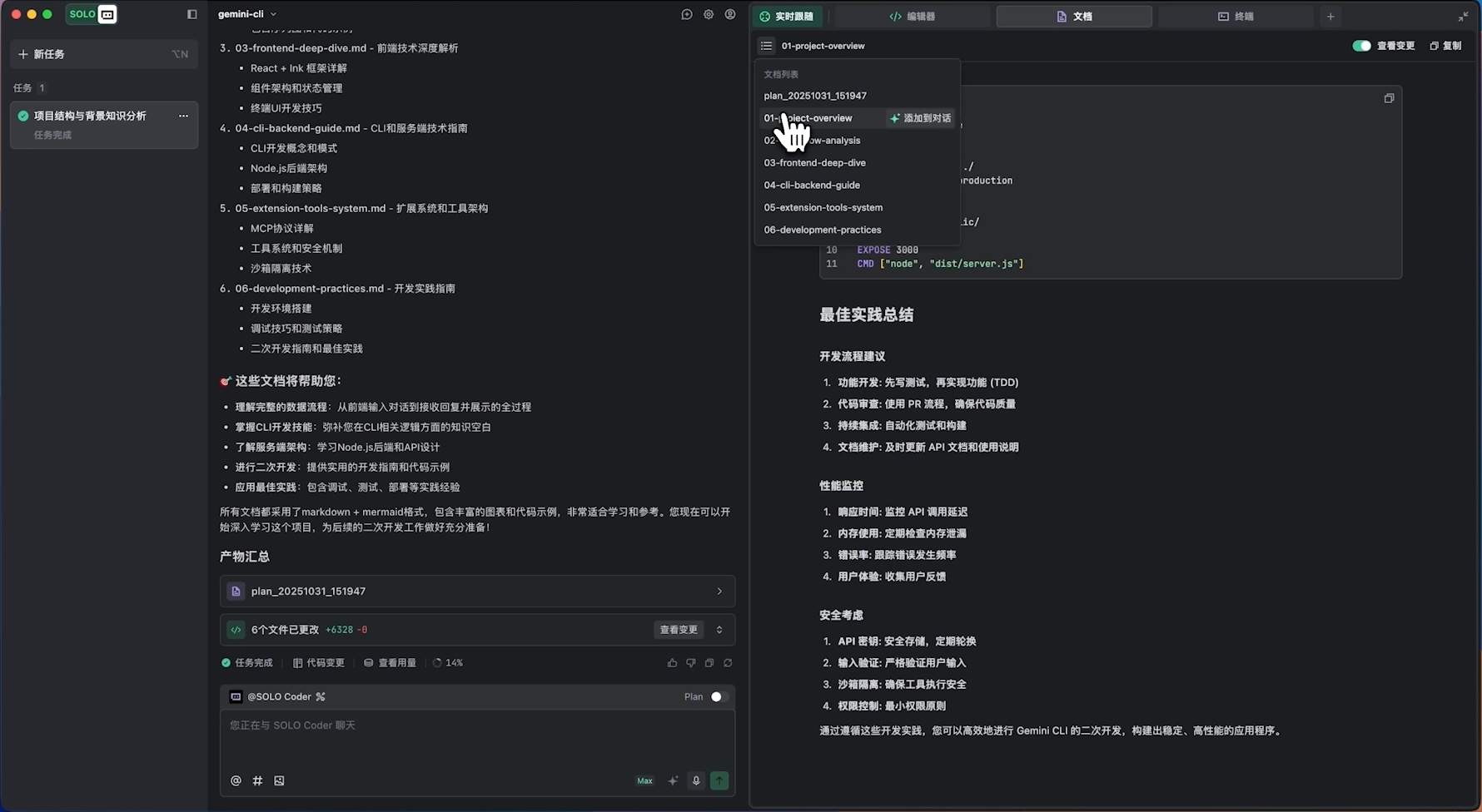 SOLO Coder 按照需求生成项目理解文档