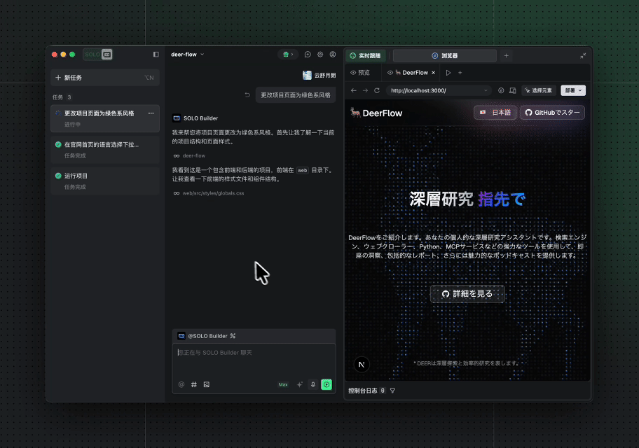 原 SOLO Builder 支持端到端生成,快速验证上线小型项目;