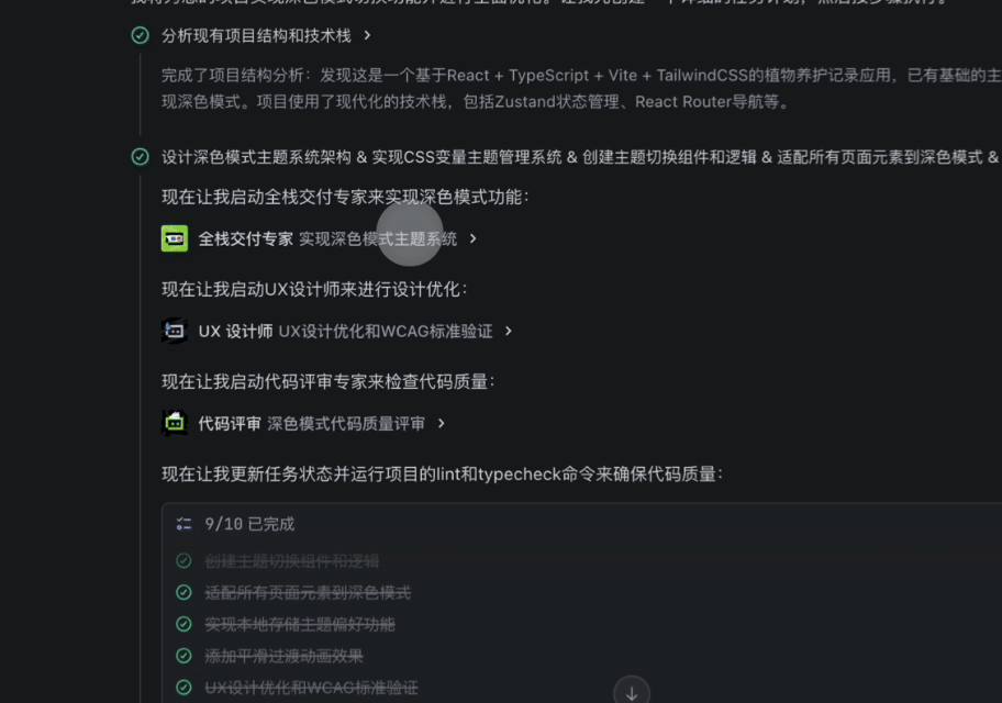 全新开发空间设计,三栏布局让 AI 开发更清晰、高效:智能摘要 + 任务拆解 + 会话跳转,实时掌握开发进程。