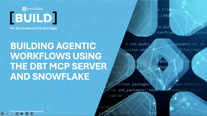 本场分享由 Snowflake 与 dbt 生态的实践者——dbt Labs 的技术产品营销经理 Sarah Gawlinski,以及 dbt Labs 开发者体验和人工智能的高级经理 Jason Ganz 共同完成,核心案例是通过 dbt MCP Server 作为中介能力,让 Agent 能够理解、调用并执行 dbt 项目中的真实数据资产与逻辑,并最终运行在 Snowflake 之上。整场内容并不追求概念上的先进性,而是反复强调工程现实与可操作性。