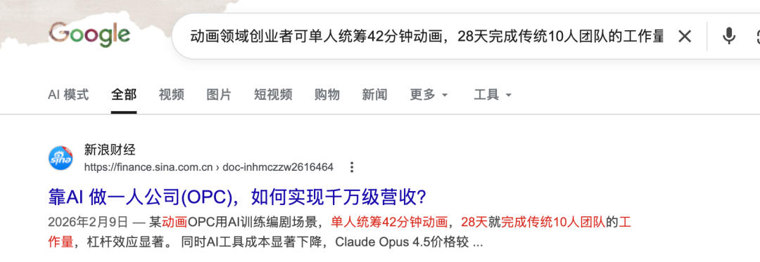 再随机抽检这个案例:“动画领域创业者可单人统筹 42 分钟动画,28 天完成传统 10 人团队的工作量”,结果也正确。