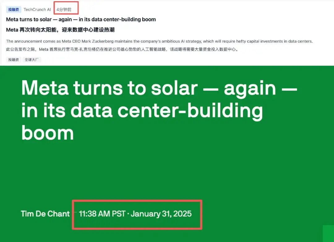 首先是抓取时间问题,点击一个显示“4 分钟前”的新闻,打开原链接后新闻显示的时间是 2025 年 1 月 31 日。