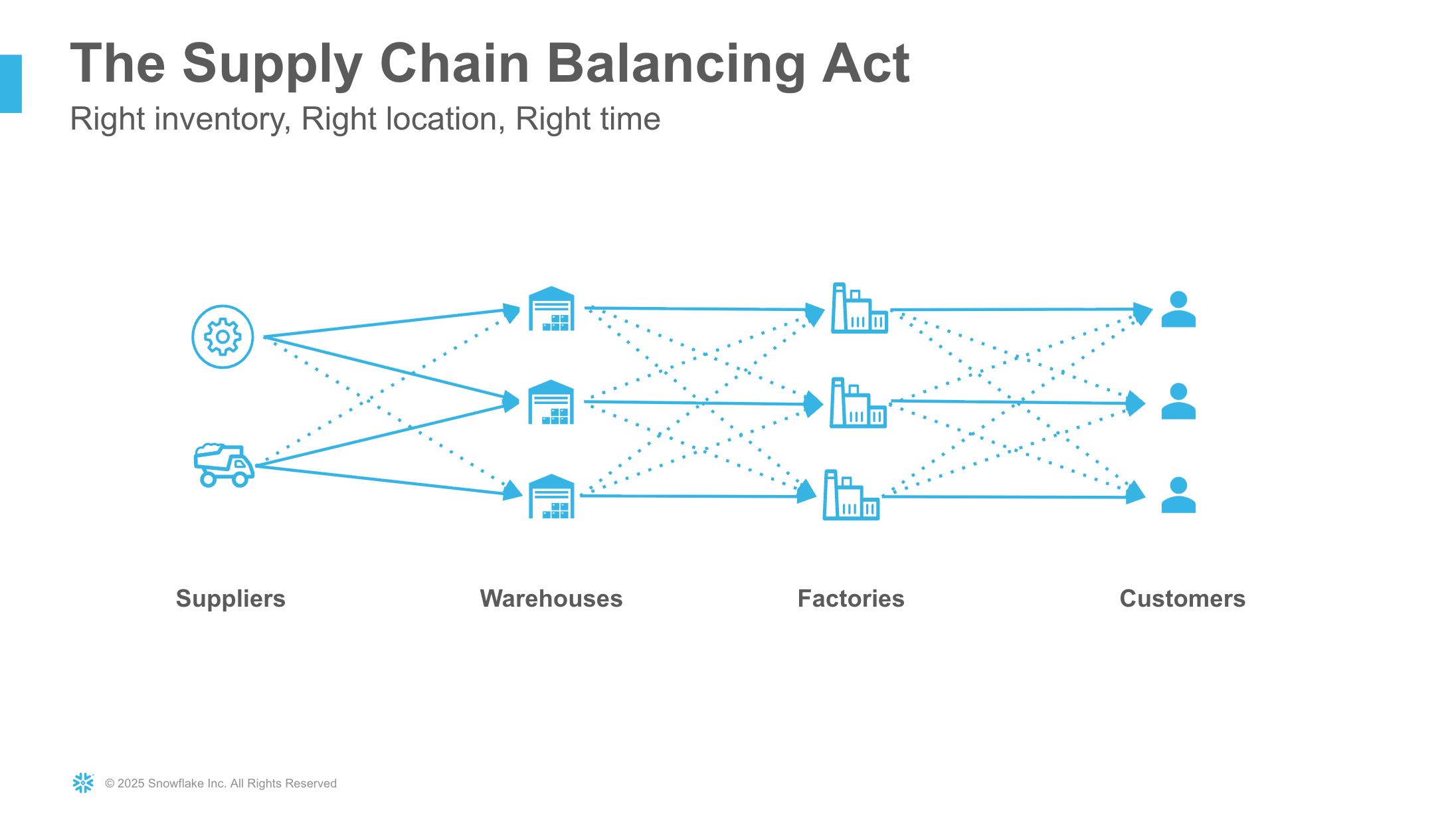 现代供应链运营面临一项关键挑战:如何在多个制造基地间高效管理原材料库存。运营经理必须持续权衡库存水平,决定是将物料从库存过剩的工厂调拨至短缺工厂,还是向供应商采购新物料。人工制定这些决策不仅耗时费力、容易出错,且往往导致成本效益欠佳。