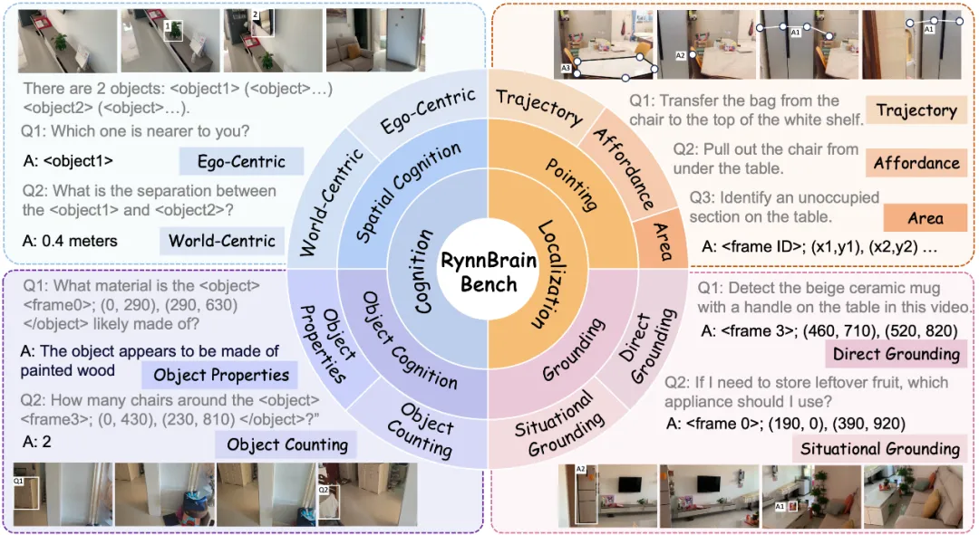 ✅ 全新评测基准 RynnBrain-Bench(评测时空细粒度具身任务)