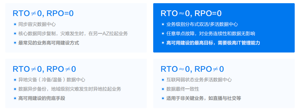 更理智的做法是把能力分层: 关键数据链路尽量做到 RPO=0,关键业务链路逐步压低 RTO,非关键部分用多活换扩展性。
